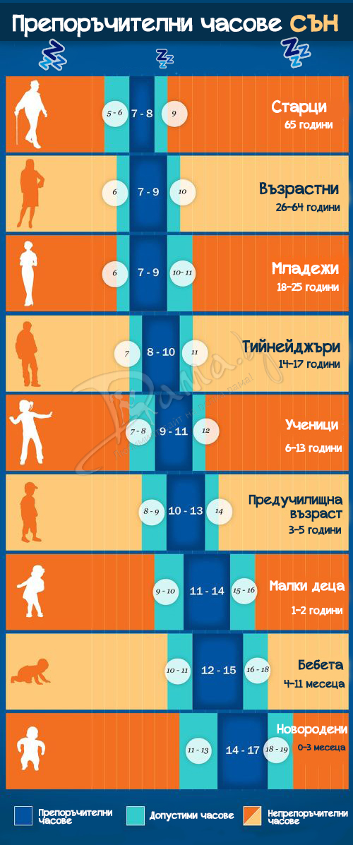 Погледнете таблицата и разберете какво е препоръчителното количество сън за всяка възраст: