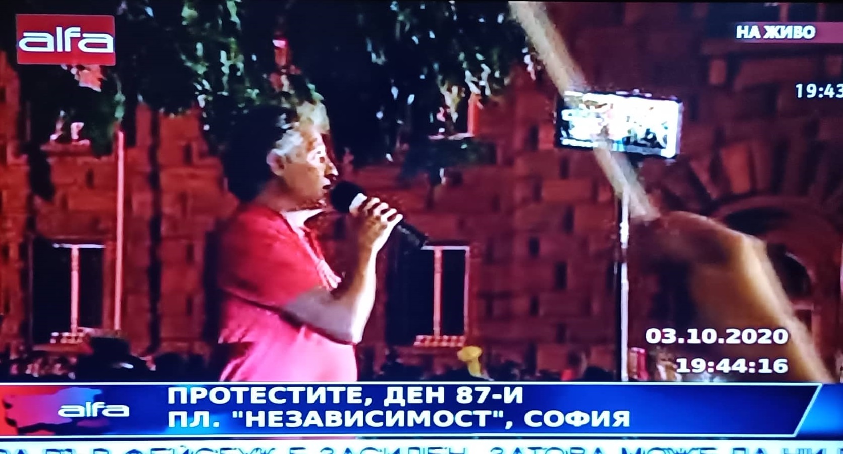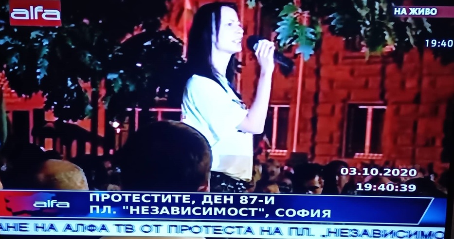 Млада протестираща се изправи преди минути пред множеството, хвана микрофона и заяви, че нейните баба и дядо искат да си дарят 50-те лева добавки към пенсиите, тъй като това увеличение е срамно.