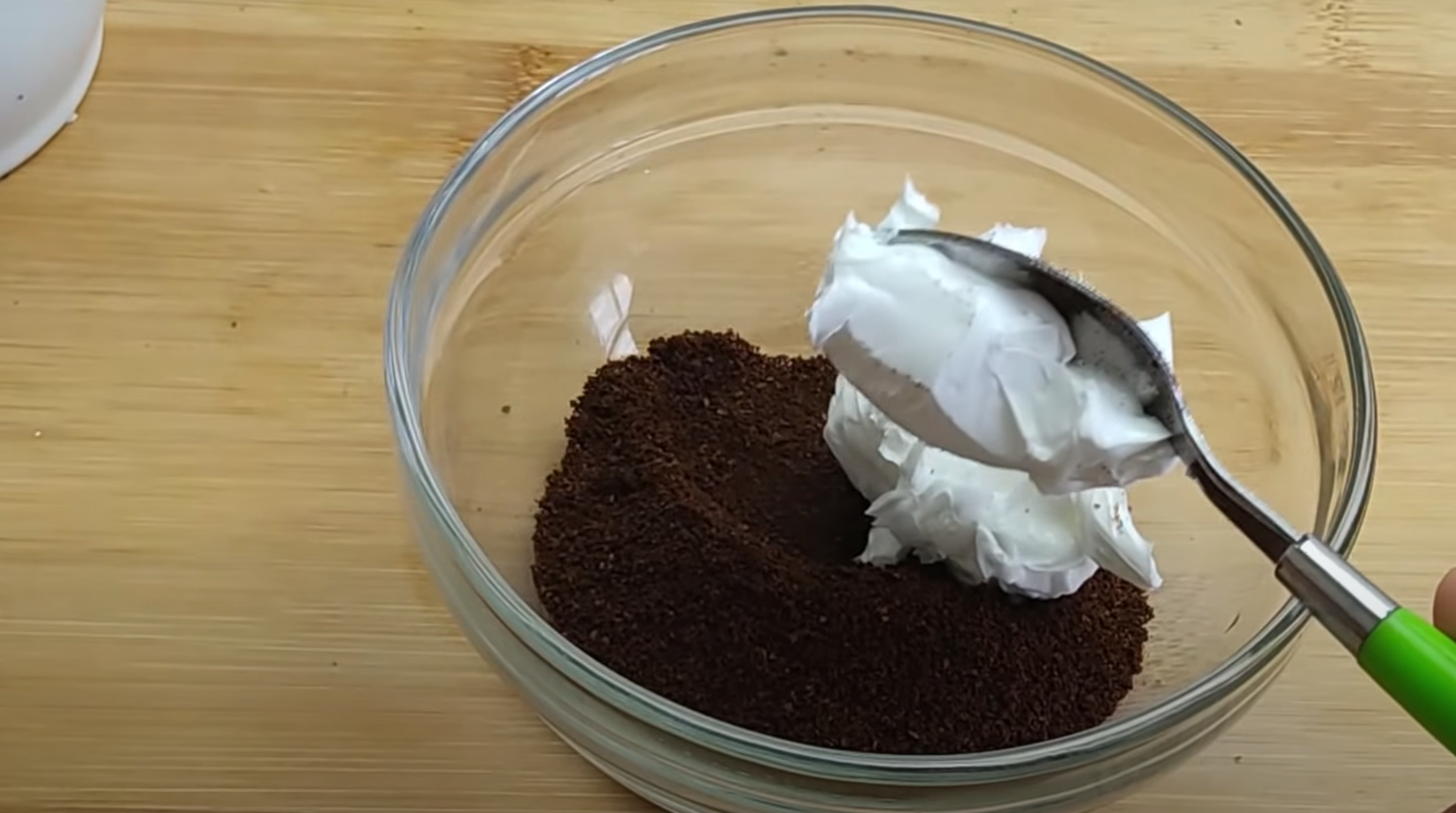 Изсипете 2 чаени лъжички кафе в отделна купа.