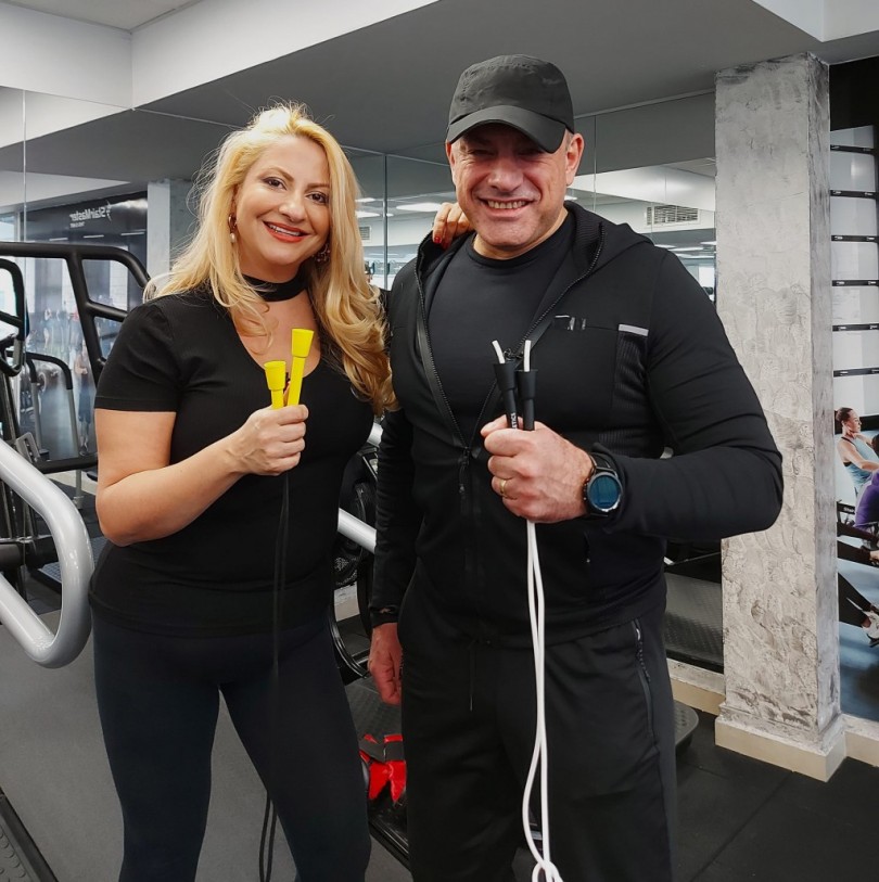 Юксел с тв водещата Нели Хаджийска. Брачната му халка блести на ръката му
